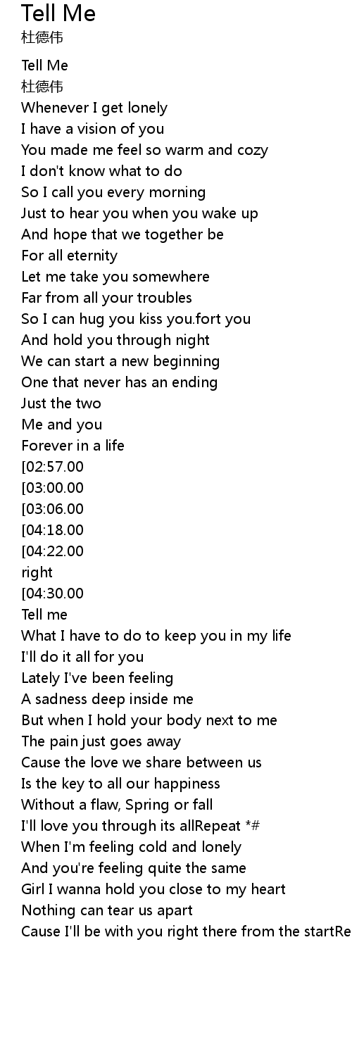 | [04:03.00][02:57.00][01:37.00] | *Baby tell me |