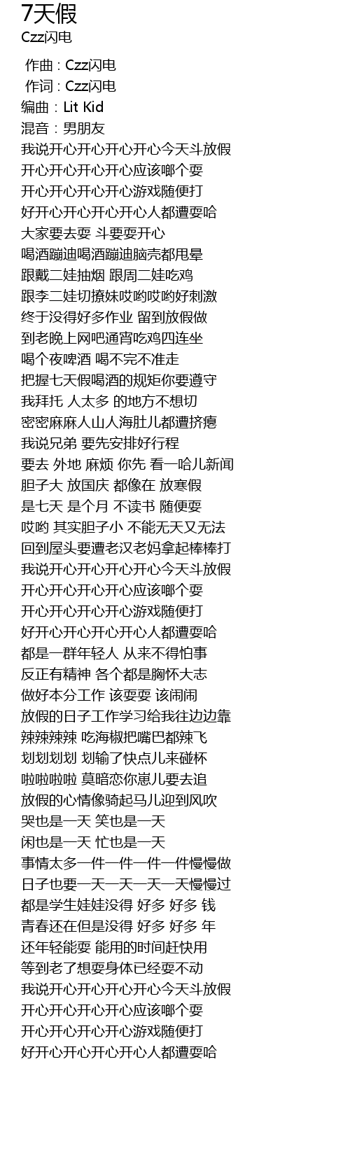 | [00:11.58] | 我说开心开心开心开心今天斗放假 |