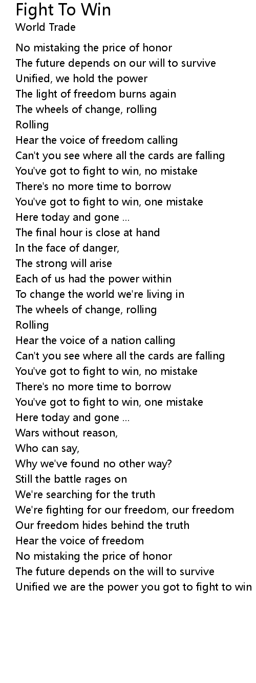 You've got to fight to win, no mistake |