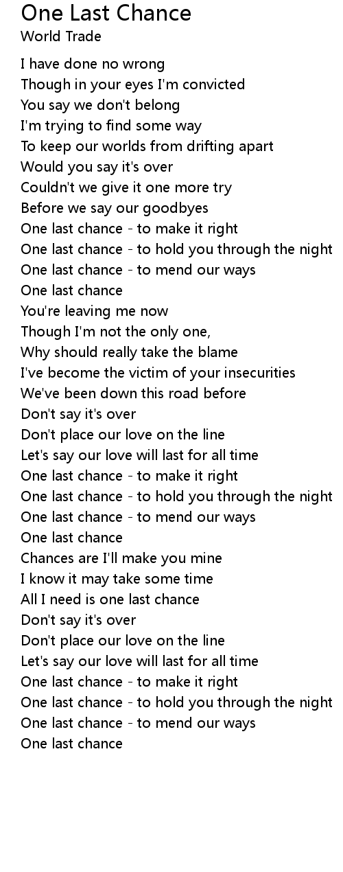 All I need is one last chance |