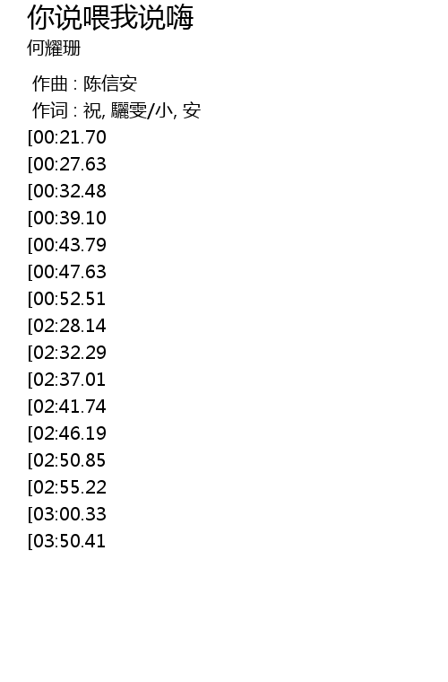 | [03:04.49][02:28.14][00:56.94] | nǐ shuō wèi wǒ shuō hāi |