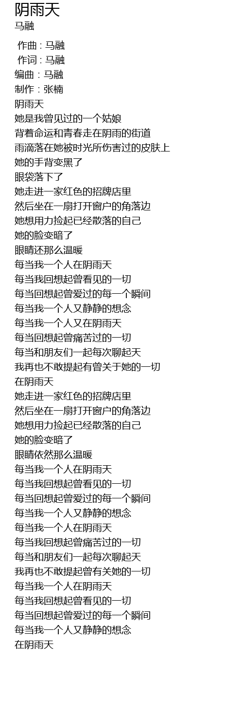 | [04:20.85] | 每当我一个人在阴雨天 |