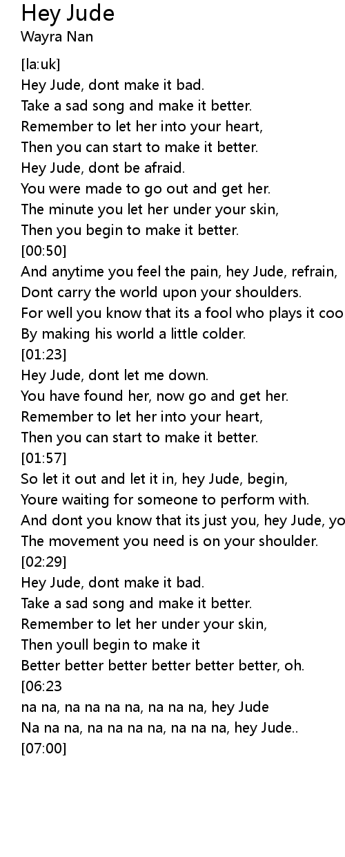 Hey Jude, dont make it bad. |