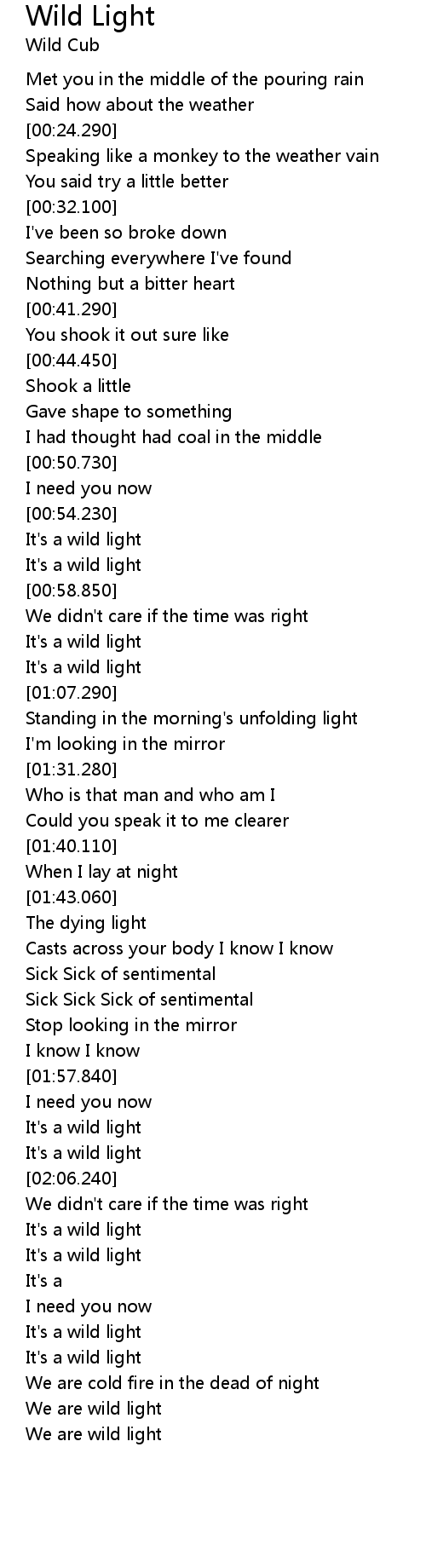 | [02:29.520] | We are wild light |