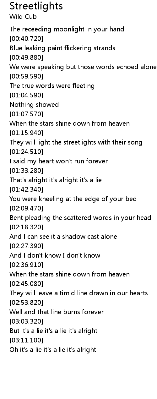 | [03:05.090] | But it's a lie it's a lie it's alright |