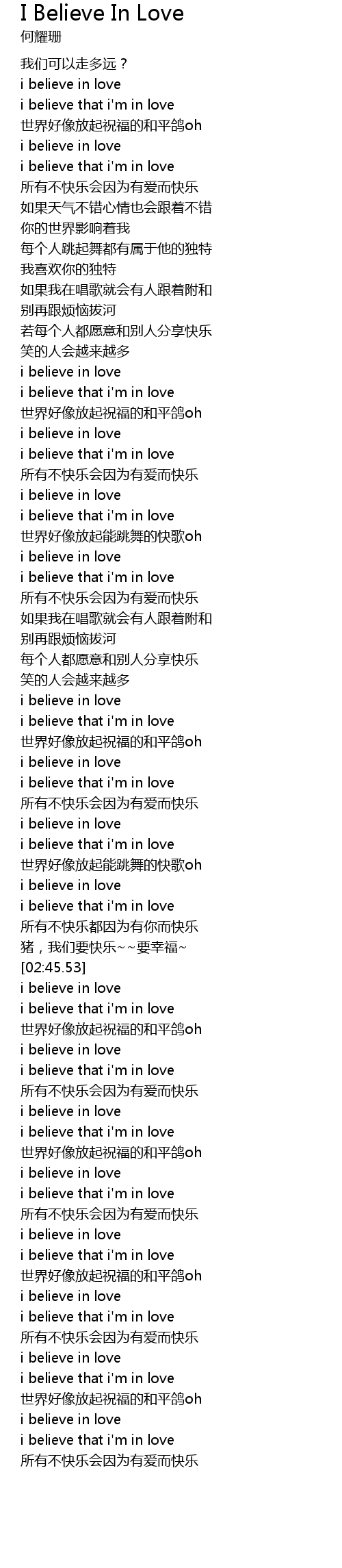 | [02:22.80] | i believe in love |
