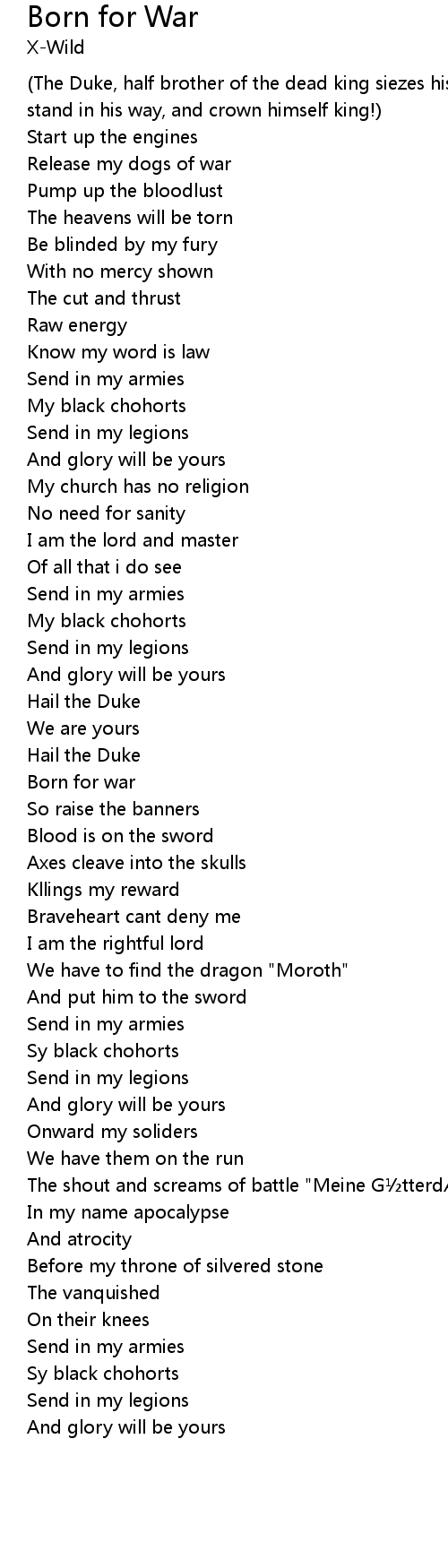 | The shout and screams of battle " Meine G tterd mmerung" | |