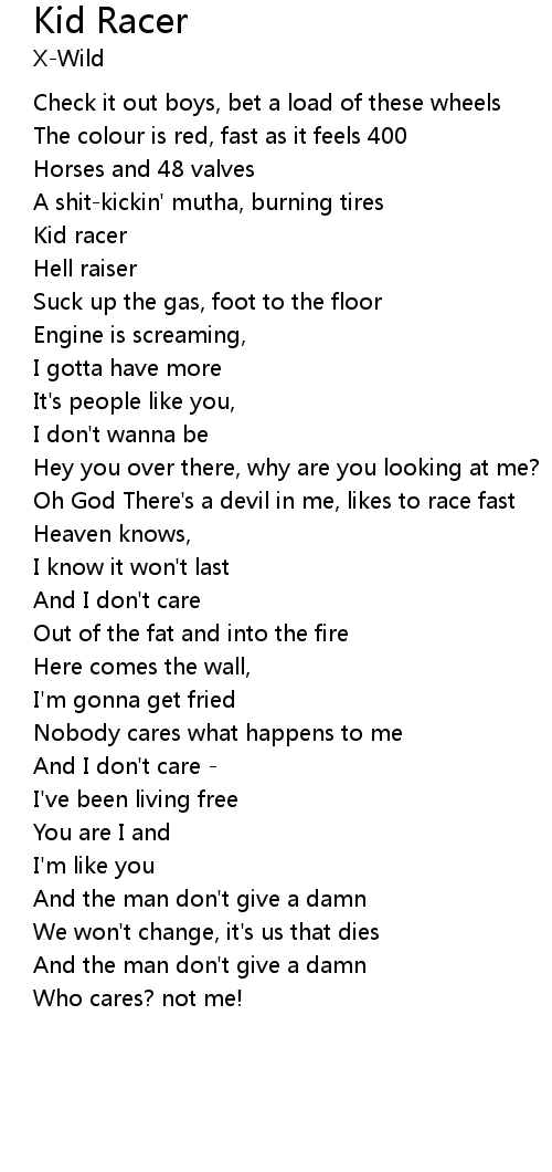 | Oh God There's a devil in me, likes to race fast | |