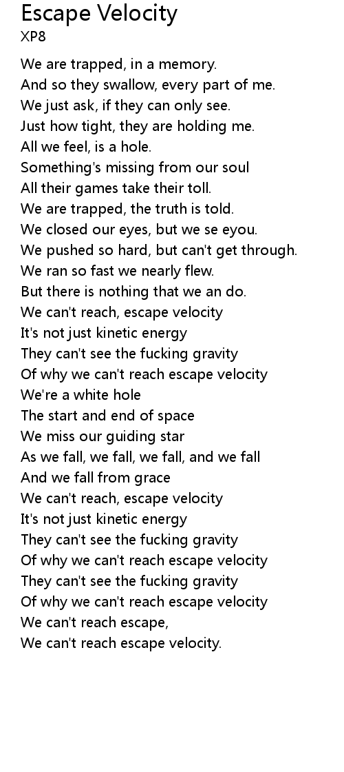 Of why we can't reach escape velocity |