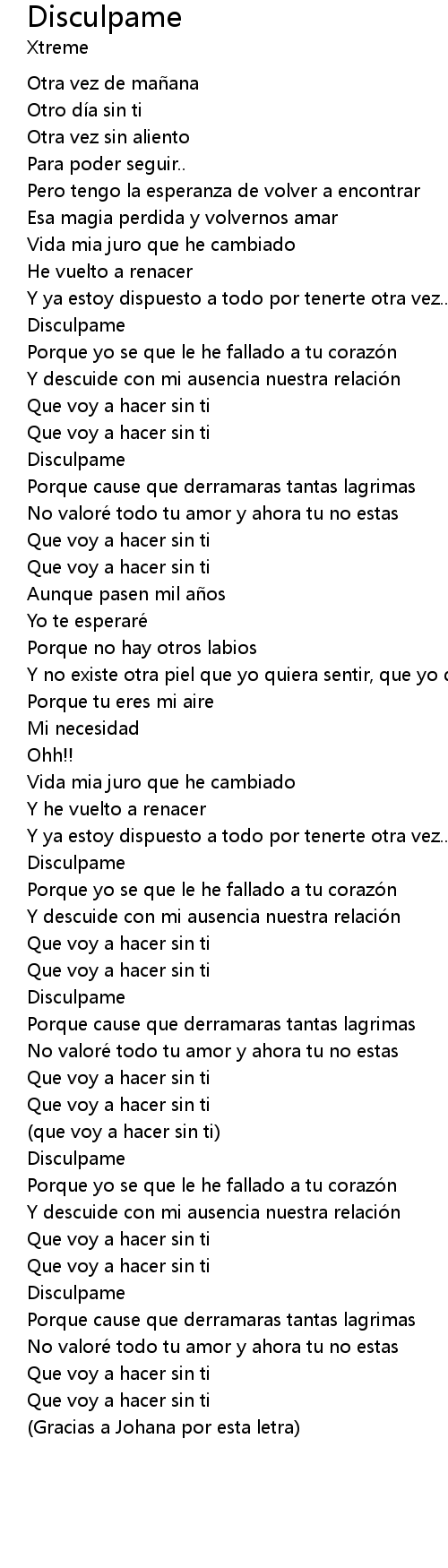 | Gracias a Johana por esta letra |