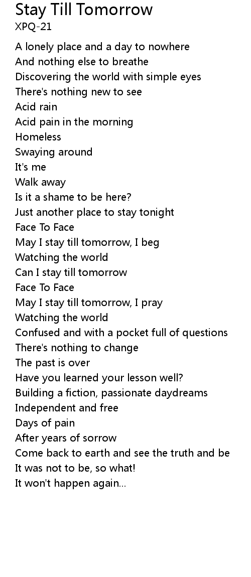 | May I stay till tomorrow, I pray | |
