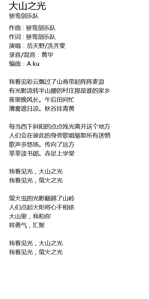 | wǒ kàn jiàn guāng, dà shān zhī guāng | |