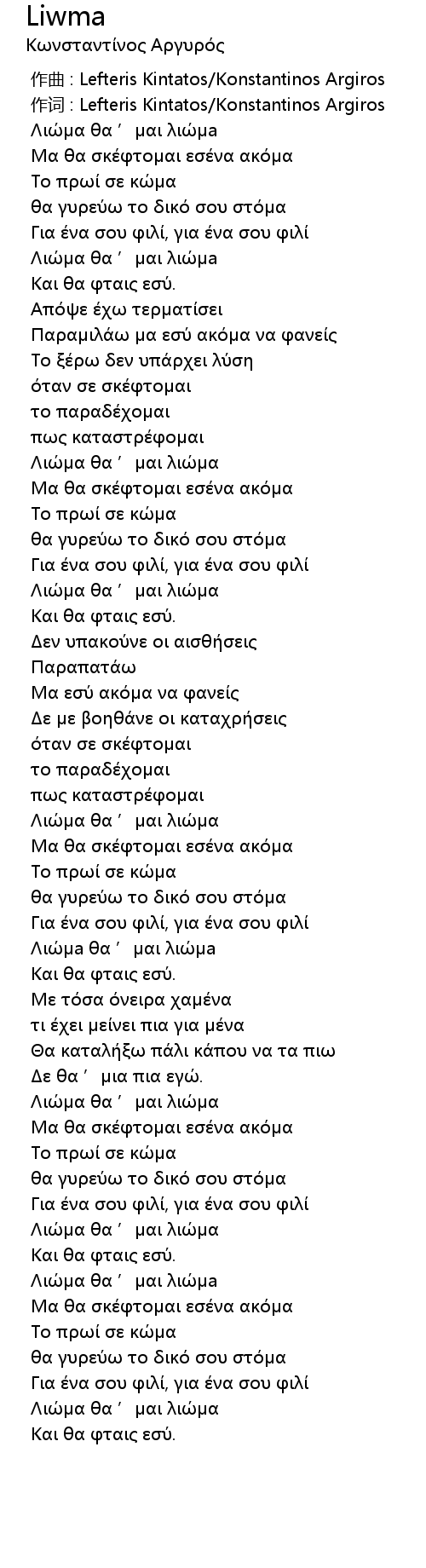 作词 : Lefteris Kintatos/Konstantinos Argiros |
