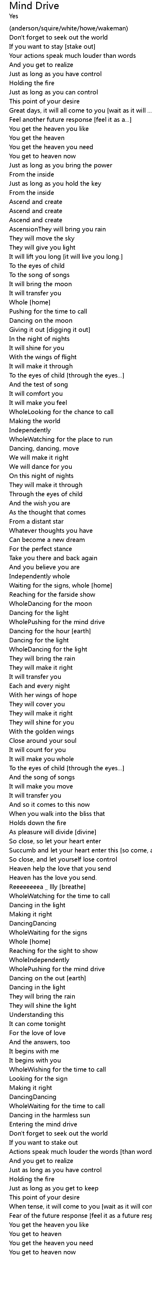 | Entering the mind drive | |