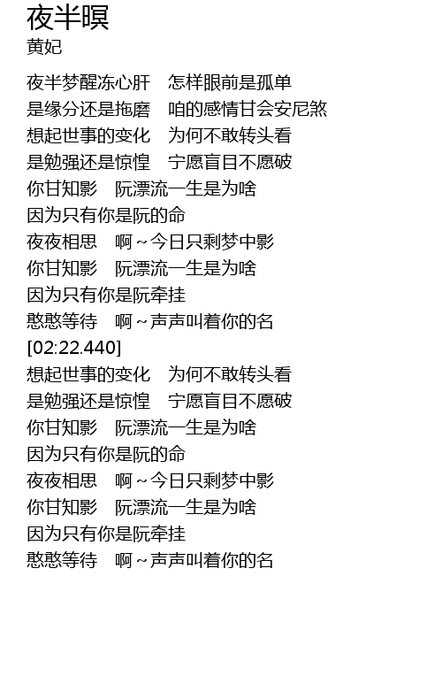 | [00:29.770] | ye ban meng xing dong xin gan zen yang yan qian shi gu dan |