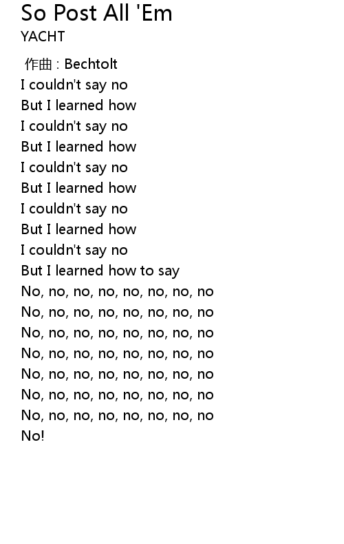 | [00:54.087] | I couldn't say no |