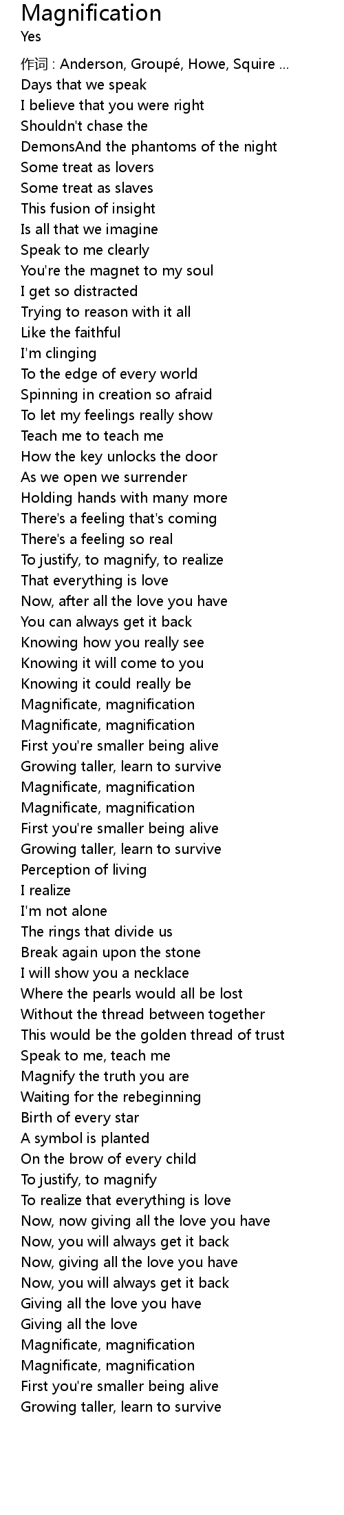 | 作词 : Anderson, Groupé, Howe, Squire ... | |