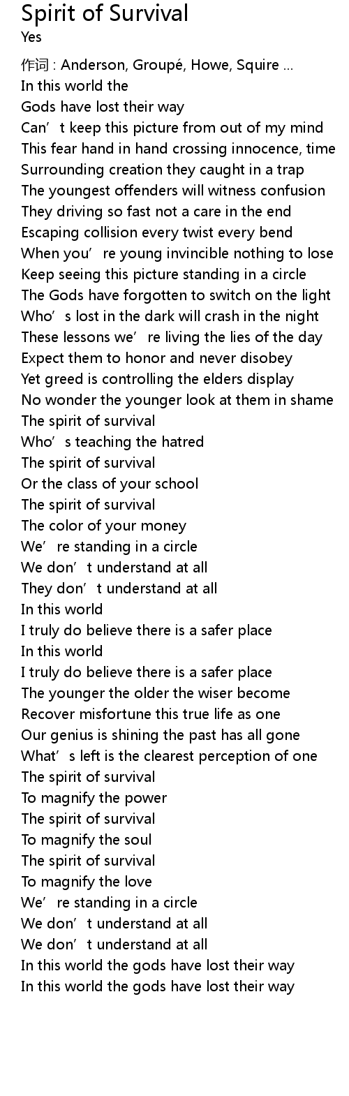 | 作词 : Anderson, Groupé, Howe, Squire ... | |