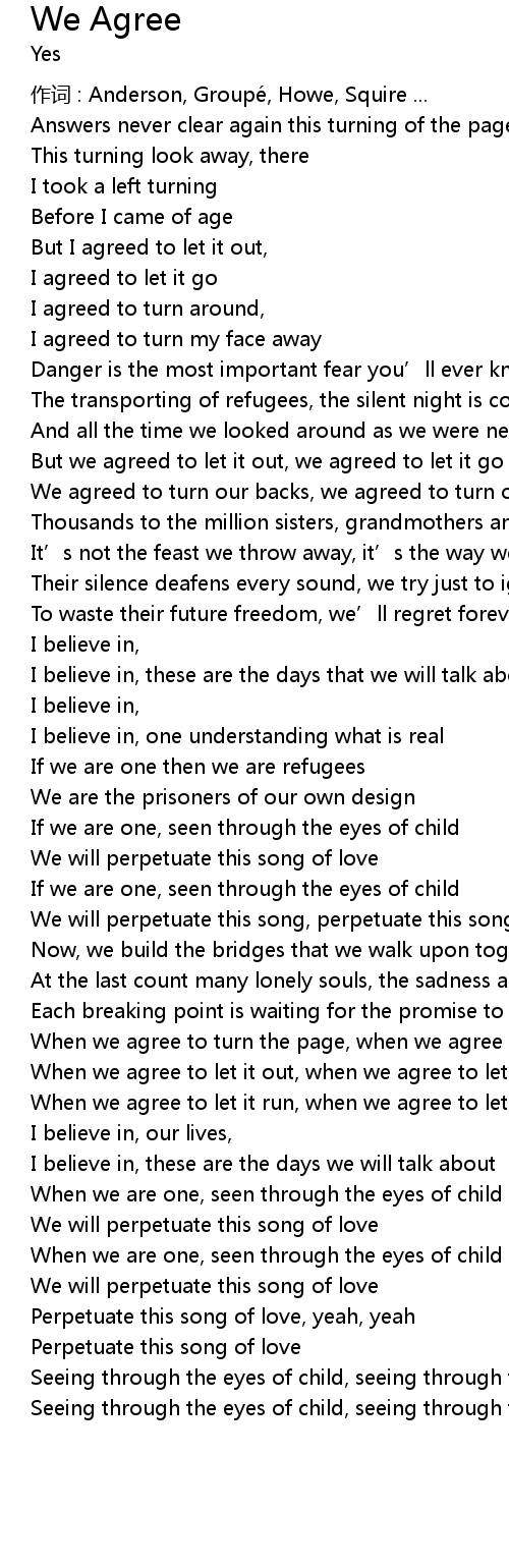 | Song | We Agree |