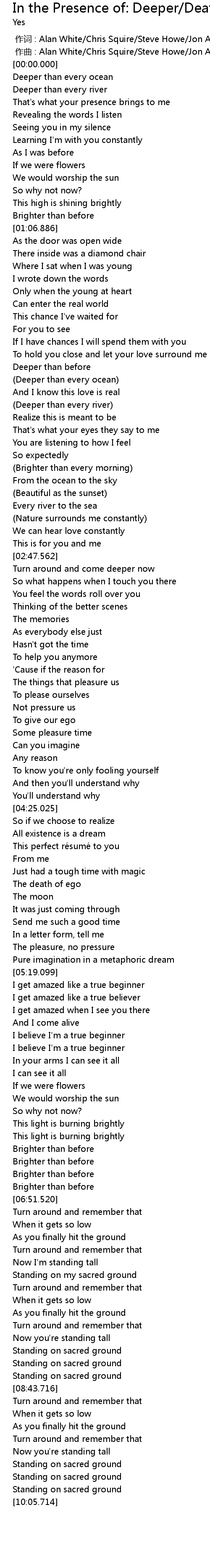 | Song | In the Presence of: Deeper/Death of Ego/True Beginner/Turn Around ... |