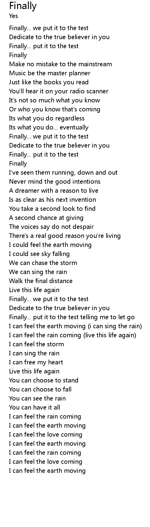 | I can feel the earth moving i can sing the rain | |