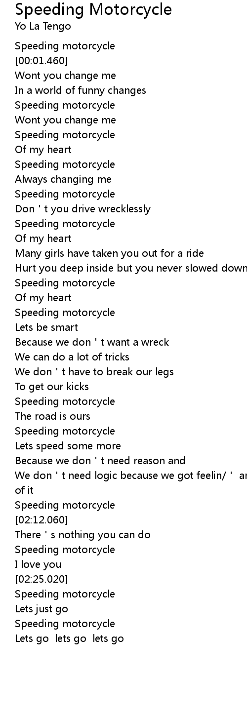 | Song | Speeding Motorcycle |