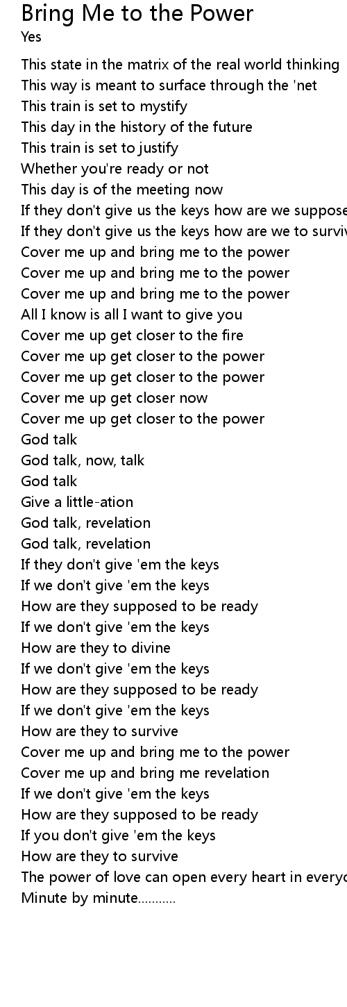 Cover me up and bring me to the power |