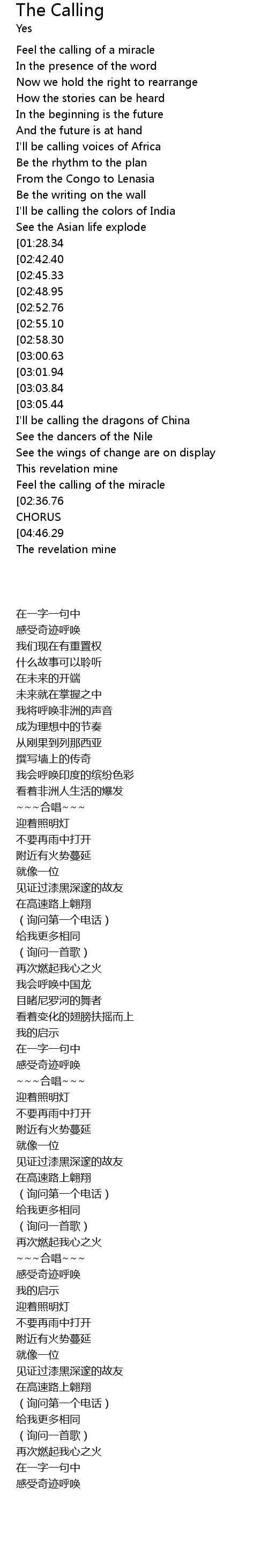 | [05:25.92][04:46.29] | Feel the calling of a miracle |