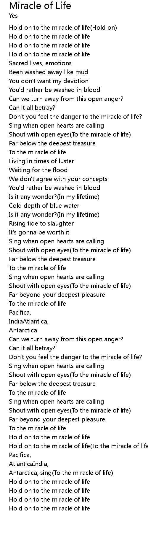 | Hold on to the miracle of life(Hold on) | |