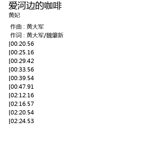 | [02:30.83][02:12.16][00:57.90] | 爱河边的咖啡 爱情的气味 |