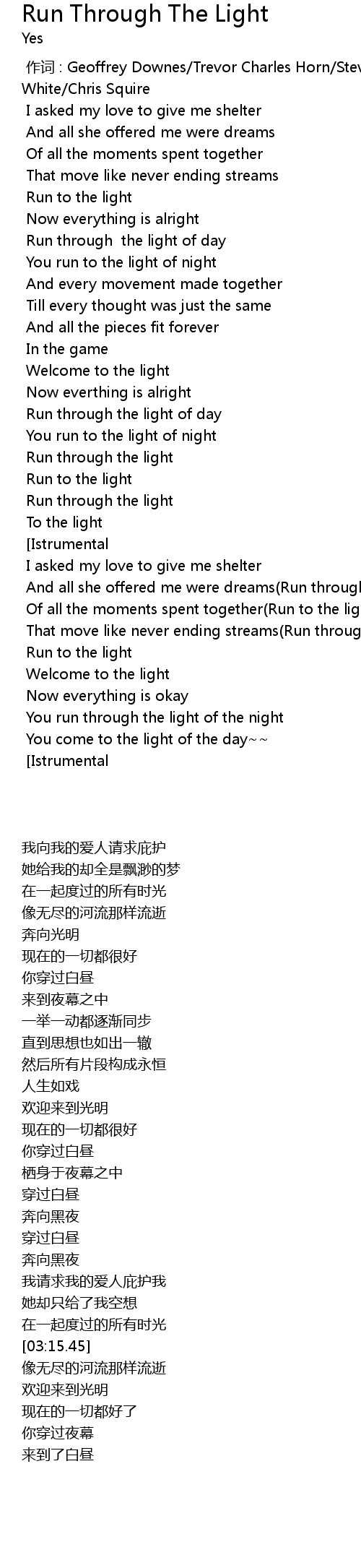 | [03:16.66] | That move like never ending streams(Run through the light) |