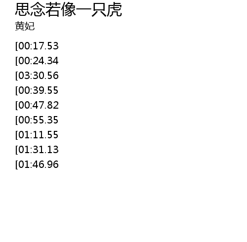 | [03:45.54][03:30.56][03:09.02][02:38.00][01:39.79][01:24.15][01:03.05][00:31.92] | 思念若像一只虎 |