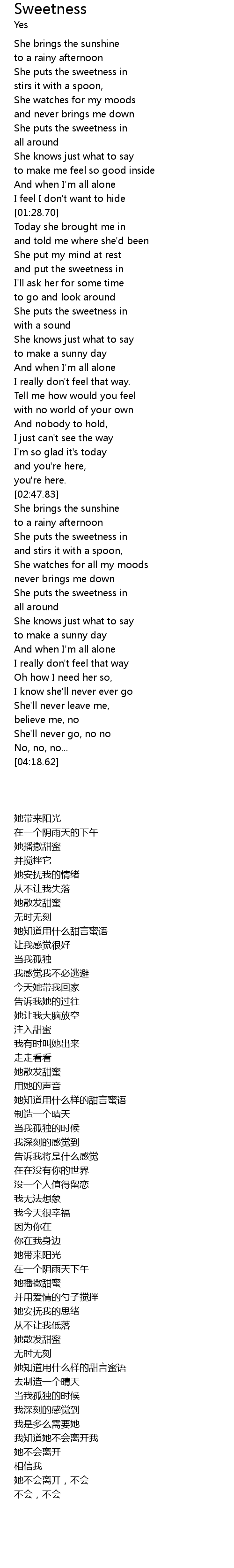 | [01:47.49] | and put the sweetness in |