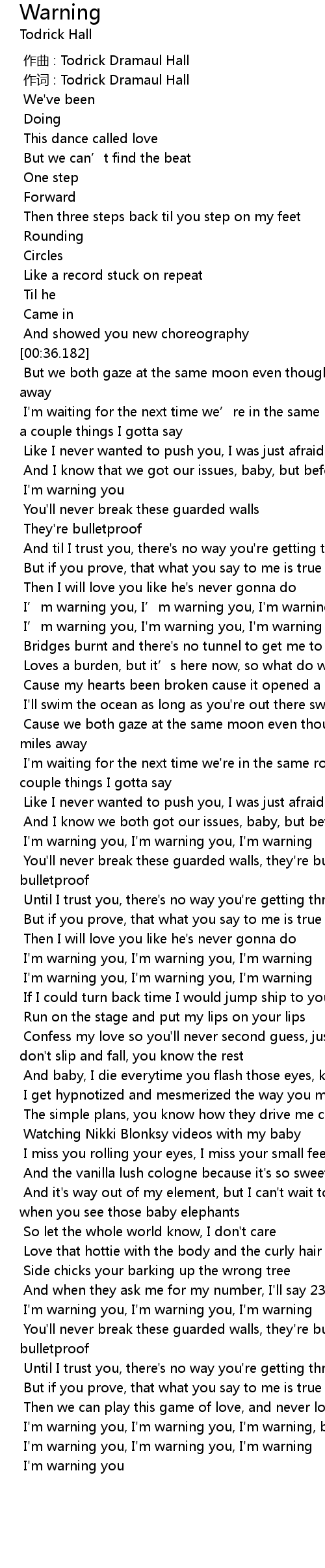 | [02:47.368] | I' m warning you, I' m warning you, I' m warning |