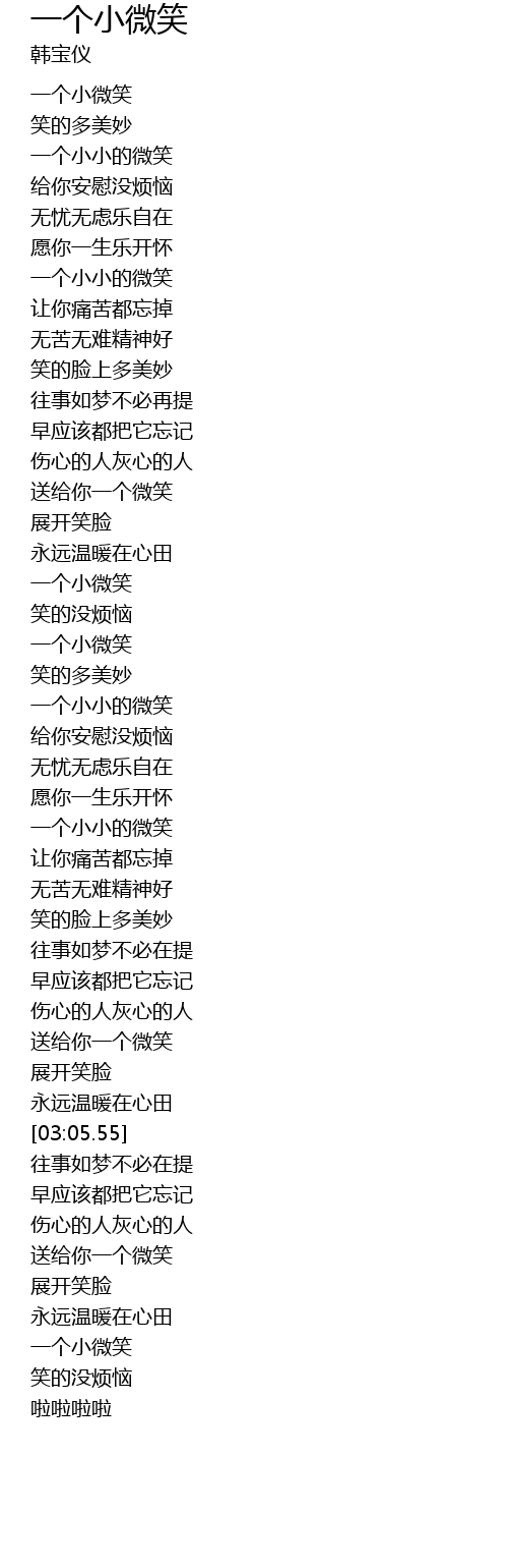 | [03:39.75] | yí gè xiǎo wēi xiào |