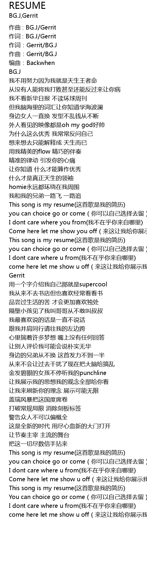 | [2:15] | This song is my resume(这首歌是我的简历) |