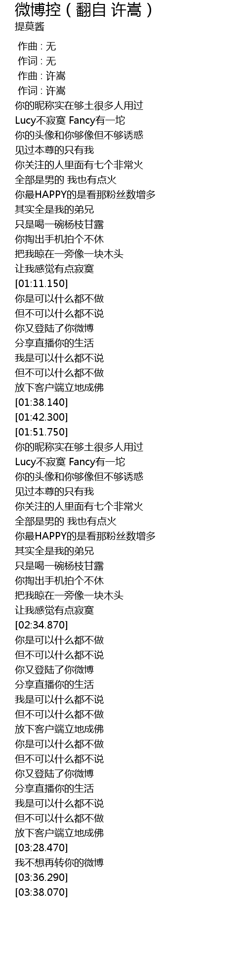 | [03:30.400] | wo bu xiang zai zhuan ni de wei bo |