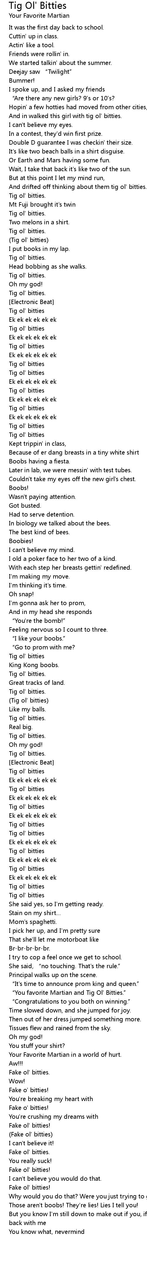 | “You favorite Martian and Tig Ol' Bitties.” | |