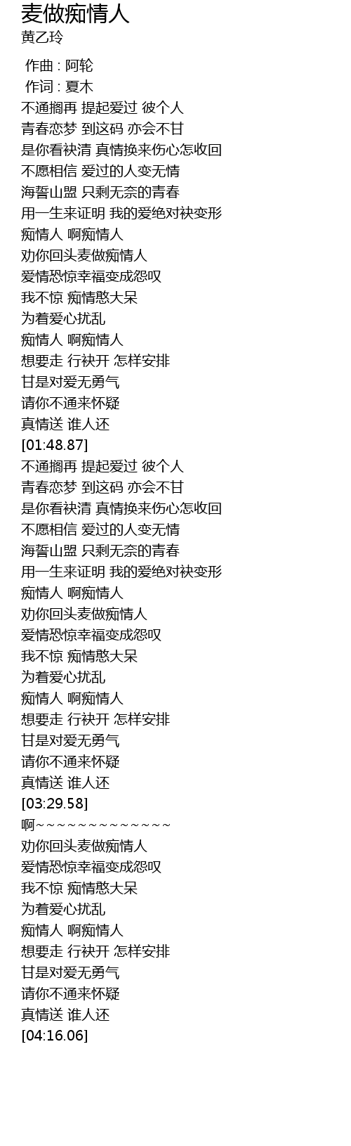 | [03:51.67] | 痴情人 啊痴情人 |