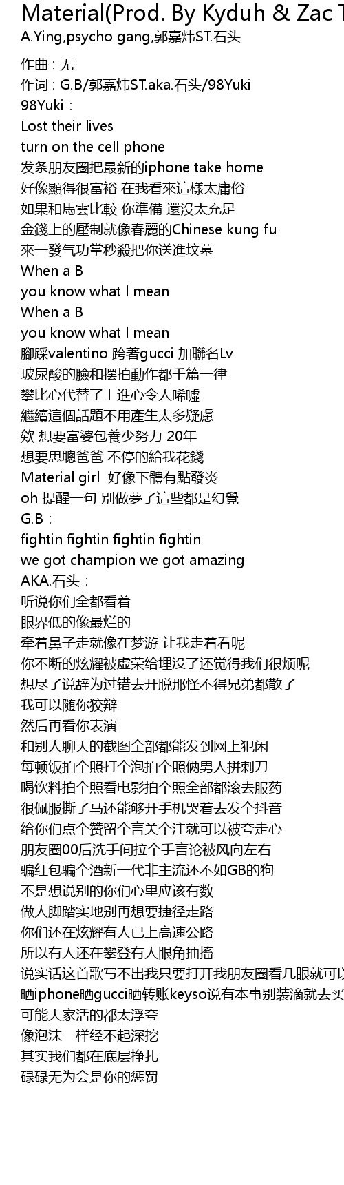 | 作词 : G.B/郭嘉炜ST.aka.石头/98Yuki | |