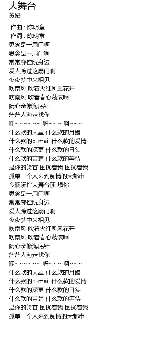 | [01:51.47] | 今晚阮伫大舞台顶 想你 |