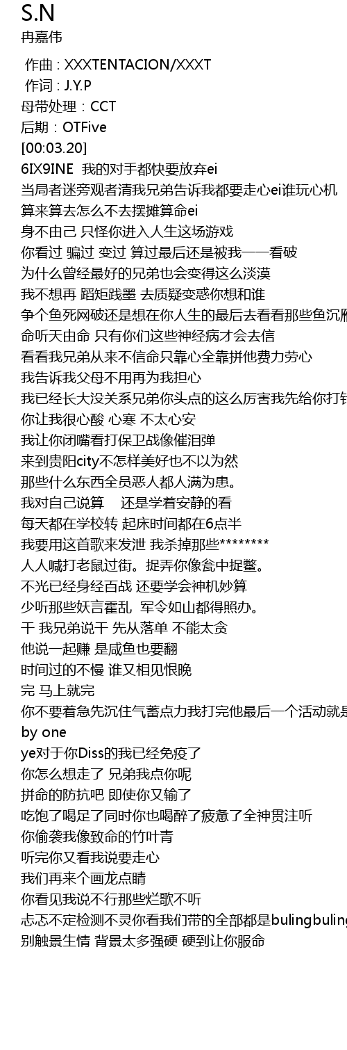 | [01:57.71] | ye对于你Diss的我已经免疫了 |