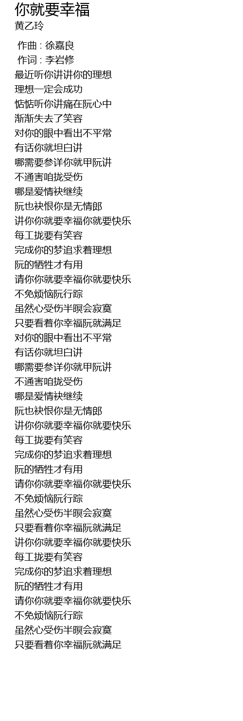| [01:38.86] | 请你你就要幸福你就要快乐 |