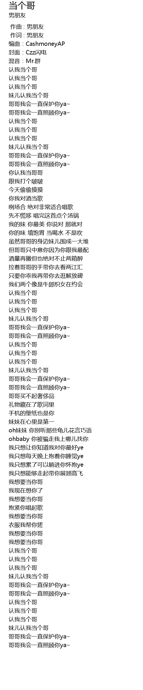 | [01:37.38] | 认我当个哥 |