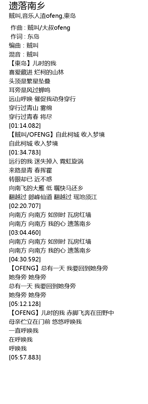 | [02:41.700] | 向南方 向南方 我的心 遗落南乡 |