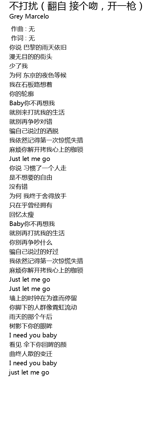 | Song | 不打扰(翻自 接个吻,开一枪) |