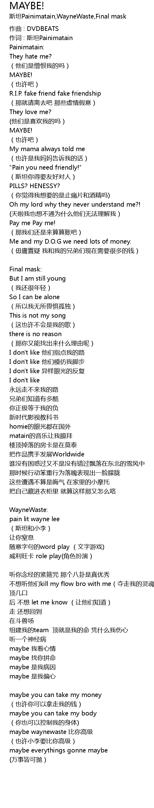 | 作词 : 斯坦Painimatain | |