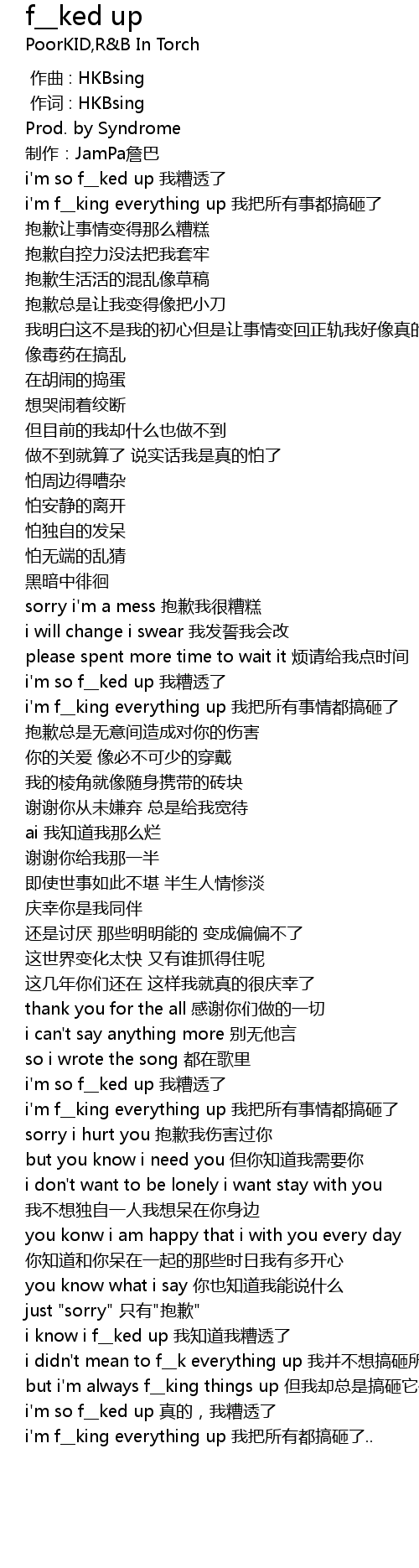 | [02:02.586] | i'm so f__ked up 我糟透了 |