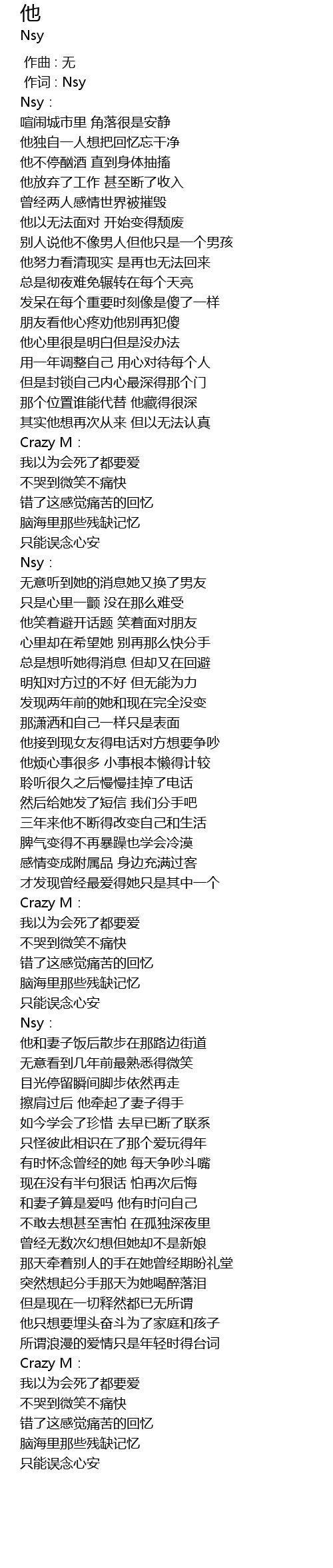 | [00:01.000] | 作词 : Nsy |