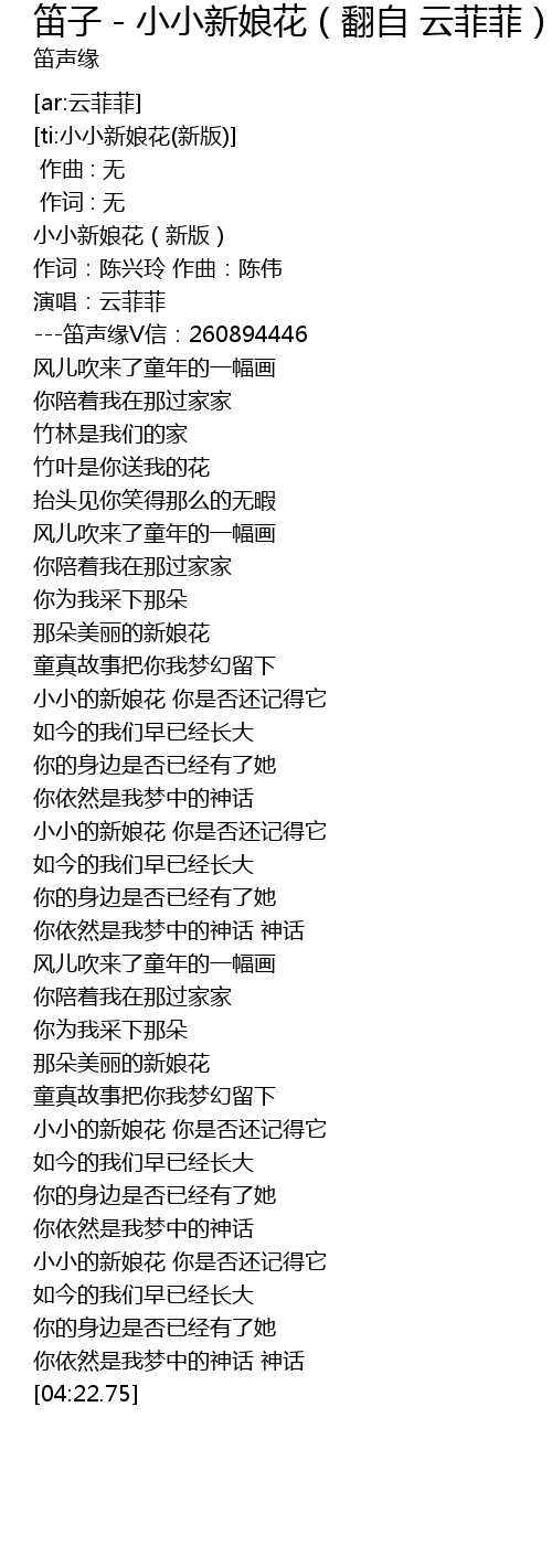 | Song | 笛子 - 小小新娘花(翻自 云菲菲) |
